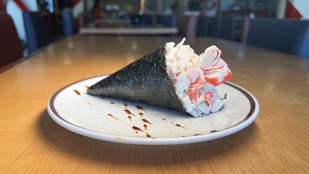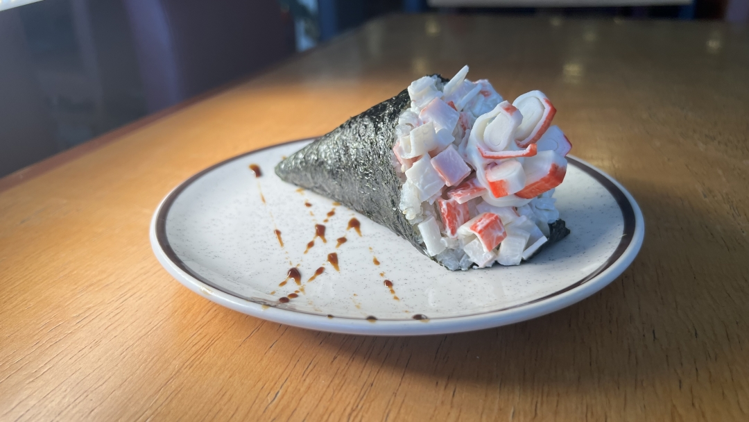 Enrolado em cone com recheio de kani kama e cream cheese. VALORES COM A EMBALAGEM INCLUSA!!